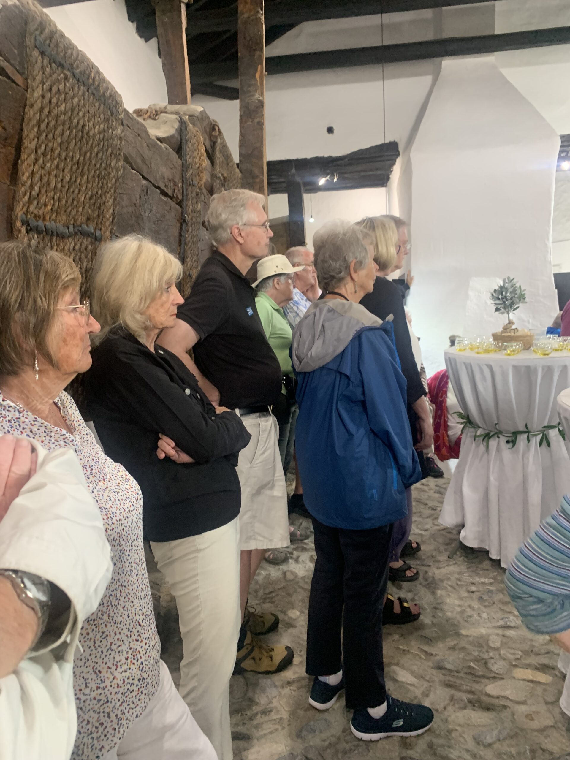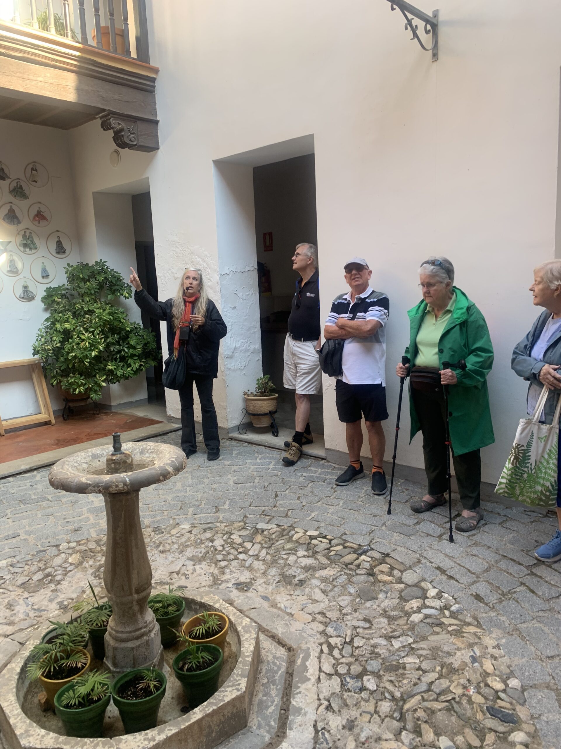 As usual, we had breakfast en route, we then boarded the coach for the short trip. The coach was able to park at the entrance to the village, where our guide Cathy came to meet us. We went first, to an area which has been cleared in order for a visitors centre to be constructed, we heard about how many different types of olives there are and the process of olive picking. We then moved on to the Town Hall, the former Palace of the last heiress of the Zayas family, Doña Maria Antonia Zayas-Fernandez de Cordoba, who left her estate to to the Zayas Foundation. The building and gardens have been restored and are now open to the public and concerts are sometimes held in the gardens, especially during their 11 day long fiesta in September. We then moved on to the 16C church, which suffered damage during the Moorish rebellion and was restored. It is a very imposing building in a pretty square. Sadly, we couldn’t enter as the floor was being restored. We then moved on to the 13C Oil Mill, where we had a thorough explanation of the oil making process, visiting each of the original processing rooms and the 2 huge wooden presses. Finally we had a tasting of oil – the good, the bad and the just about acceptable ! We then had the opportunity to purchase local oils and other local craft ware – kitchen oil containers, ceramics, baskets made from esparto grass etc. We then left our guide and had a gentle walk back through the village to our coach and onwards for lunch !